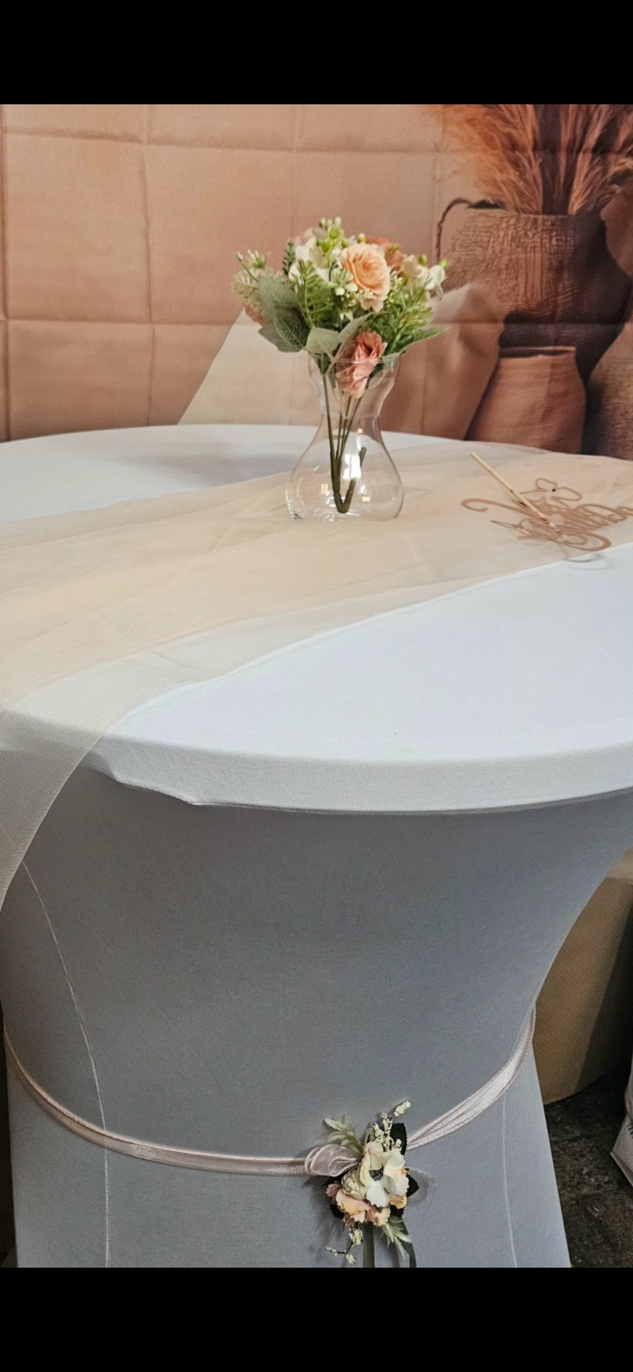 Statafels met of zonder hoes of losse hoes met of zonder strik en met of zonder bloem decoratie