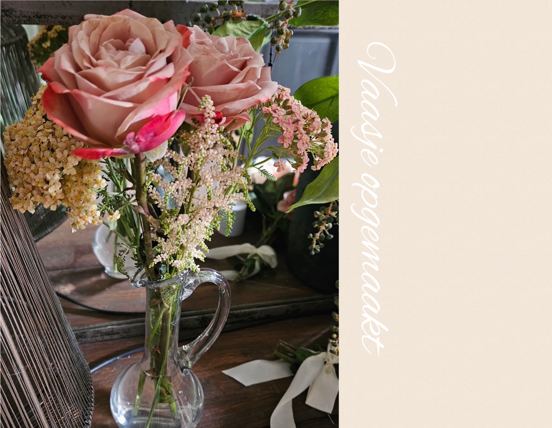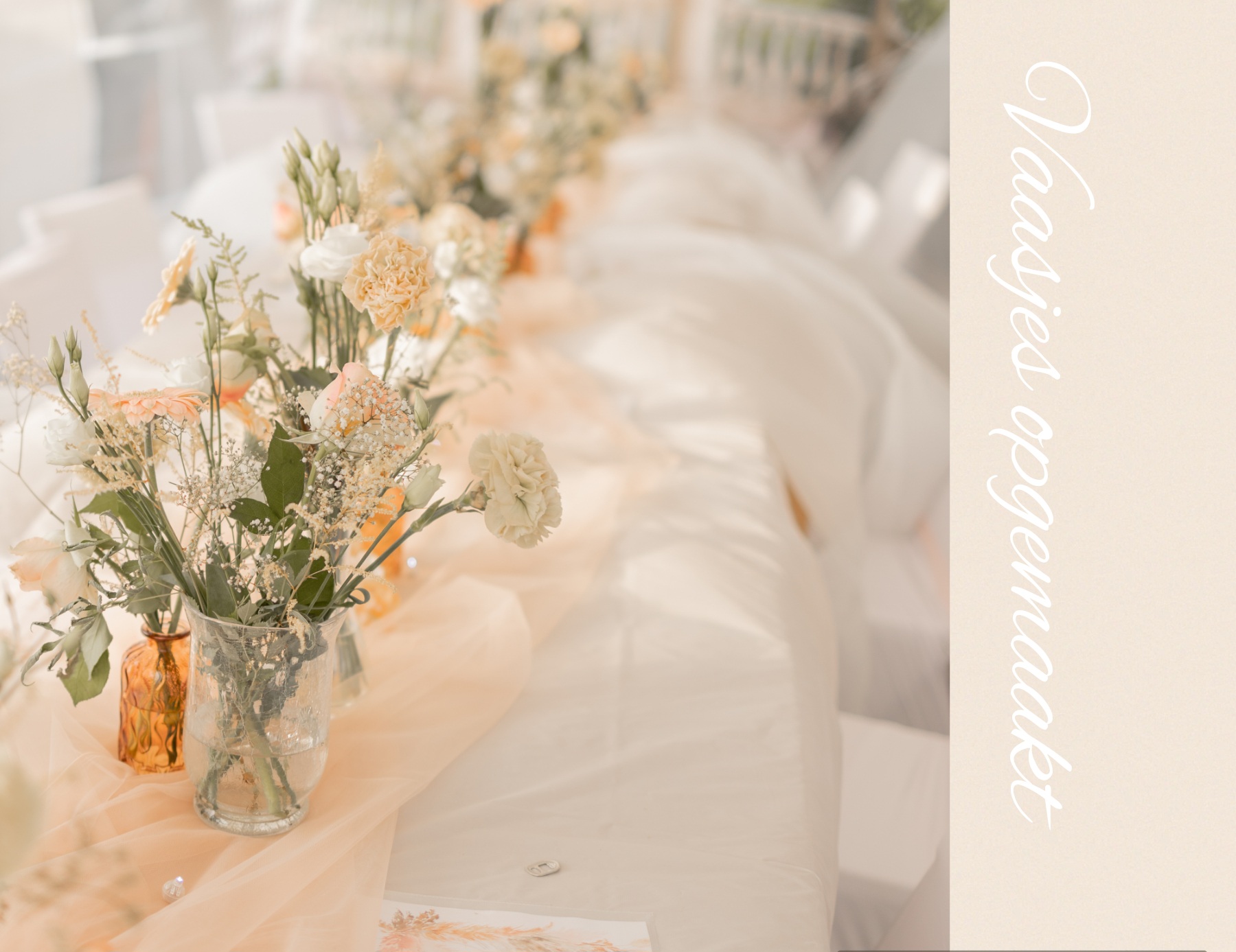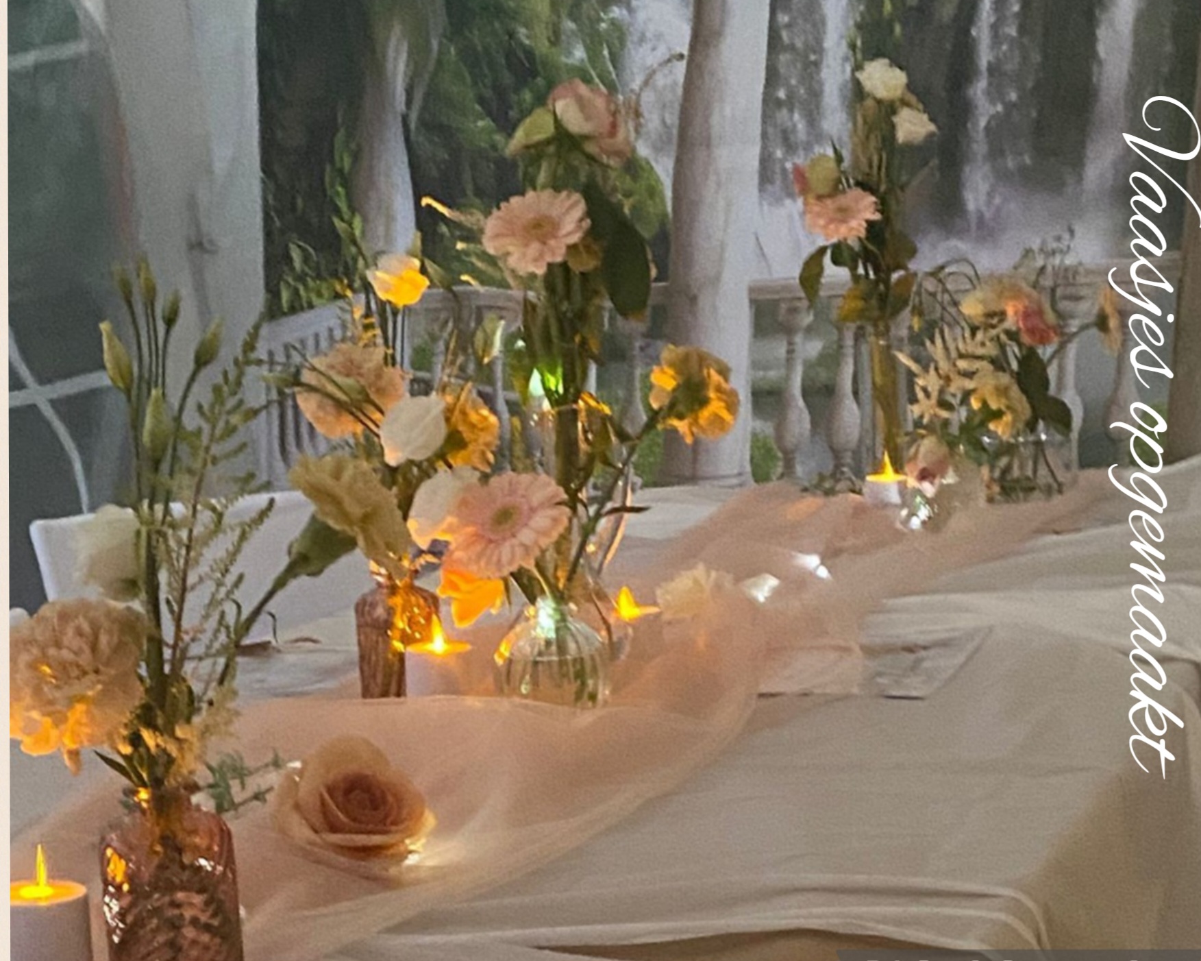 U kunt ervoor kiezen om vaasjes te huren zodat u ze zelf kunt opmaken of compleet opgemaakt bestellen met verse bloemen of Kunstbloemen.